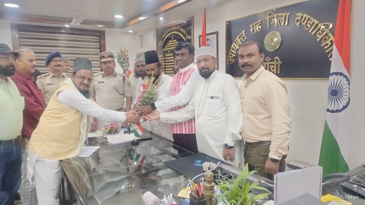 जश्न-ए-ईद मिलादुन्नबी के अवसर पर शांति, सौहार्द्र एवं सुव्यवस्थित माहौल में पर्व संपन्न कराने हेतु आज दिनांक 02.09.2025 को उपायुक्त-सह-जिला दंडाधिकारी, रांची श्री मंजूनाथ भजन्त्री की अध्यक्षता में शांति समिति की बैठक आयोजित की गई। बैठक में वरीय पुलिस अधीक्षक, रांची श्री चंदन सिन्हा, अपर जिला दंडाधिकारी (विधि-व्यवस्था) श्री राजेश्वरनाथ आलोक, अनुमंडल पदाधिकारी रांची, सदर श्री उत्कर्ष कुमार, पुलिस अधीक्षक नगर श्री अजीत कुमार एवं शांति समिति के सदस्य उपस्थित थे।